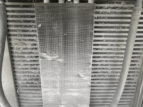 The radiator was covered in oil with embedded dirt/gunk, and grass.