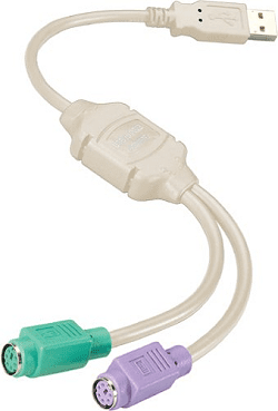 But computers these days no longer have PS2 Keyboard/Mouse connectors on them, so I needed another adapter, a PS2 to USB like this one: