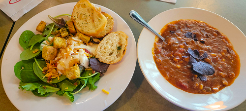 while I got the Salad Bar and a bowl of Fire Roasted Tortilla Soup.