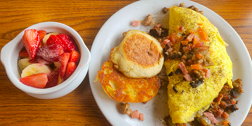 Brandi, Lowell, and Landon are up in Oklahoma for Easter with Lowell’s parents, so after thinking it over, brunch today was at Denny’s once again. We had kind of expected them to be really busy, with families there after church. But, actually, they were much less busy than usual.