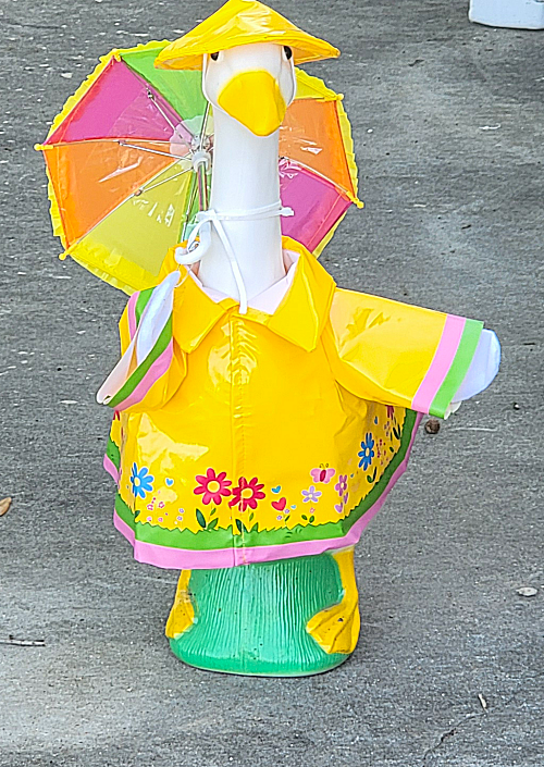 Now that Easter has passed, Glinda The Good Goose is all ready for those April Showers.
